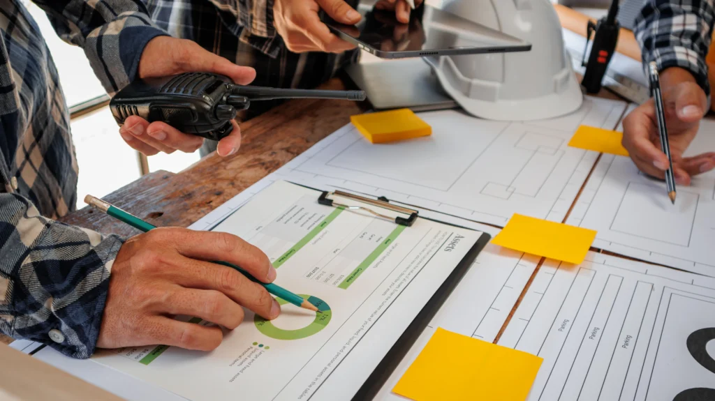 Equipe de projetistas otimiza recursos e prazos com softwares modernos, oferecendo soluções eficientes e econômicas aos clientes.